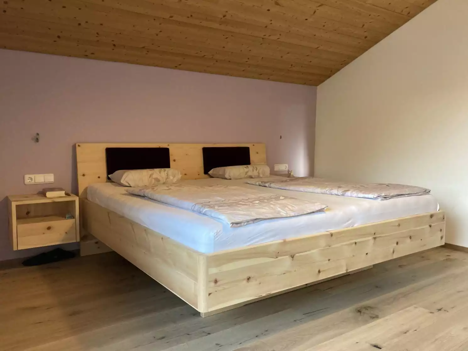 Erholsamer Schlaf in maßgefertigten Betten aus Zirbenholz und anderen Massivhölzern – ergänzt durch individuelle Badmöbel, die Funktionalität und natürliches Design harmonisch vereinen.